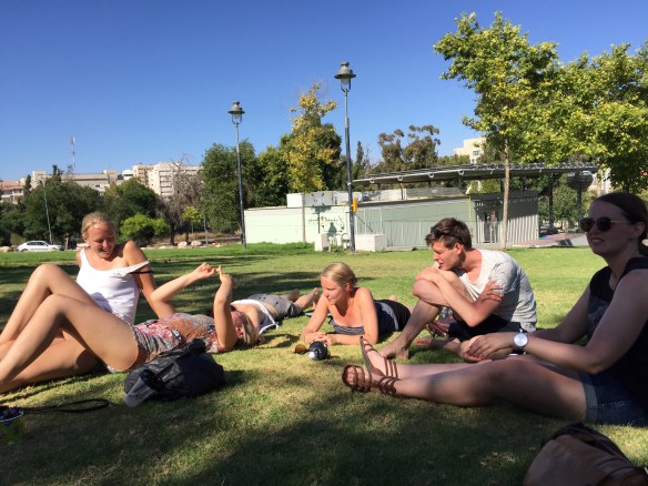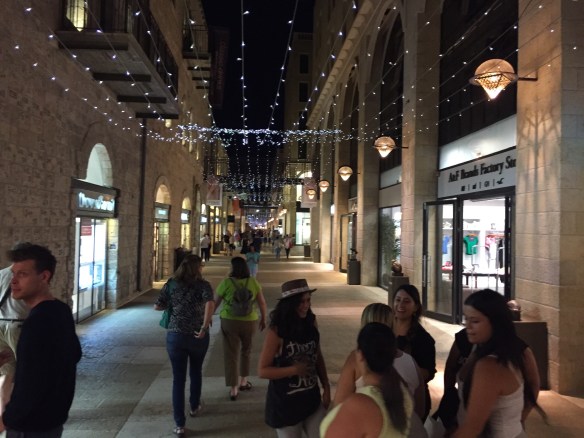 Väl tillbaka på hotellet var det dags att förbereda oss inför kvällens högtid, sabbaten. Den nyinköpta kippan placerades på huvudet, skjortan sattes på och därefter tog vi oss ner till den västra muren där alltså en hel massa av judar samlas för att fira att sabbaten är här. Prick 19.07 ringde klockorna och plötsligt var det förbjudet att fota och använda elektronik, nu är sabbaten här och då infinner sig vilan. I en dryg timme gick vi runt bland ortodoxa judar som bad, sjöng sånger, dansade och firade tillsammans. En otrolig upplevelse, även om man kände sig väldigt malplacerad i sin egna västerländska outfit. Men kippan gjorde att man i alla fall någorlunda passade in, haha 🙂 En häftig upplevelse var det!