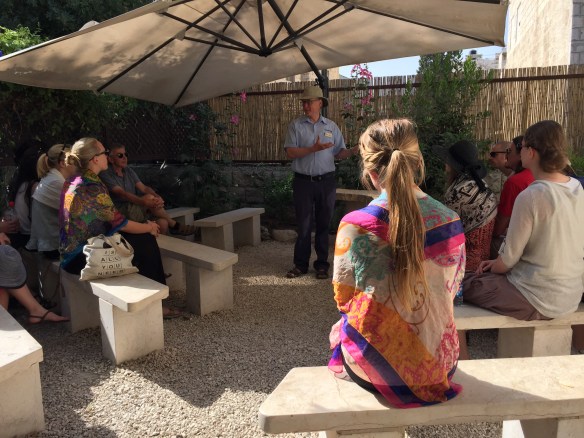 The Garden Tomb blev därför ett besök som präglades av starka känslor och förutom att besöka graven och vandra omkring i trädgården passade vi även på att sätta oss ner i skuggan och fira nattvard tillsammans. En underbar start på dagen med andra ord!