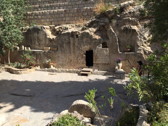 Vi började dagen med ett besök vid The Garden Tomb, en utav de platser som man tror att Jesus korsfästes på och sedan blev begraven. Jag skriver tror för att det är just det man gör, man vet inte riktigt. I flera hundra år har man trott att platsen för korsfästelsen skedde där Gravkyrkan idag står placerad. Detta baserar sig på att Konstantinopels mor upplevde att hon såg ett kors på denna plats och kände att det var här Jesus dog och blev begraven, och att hon sedan lät bygga en kyrka på denna plats.