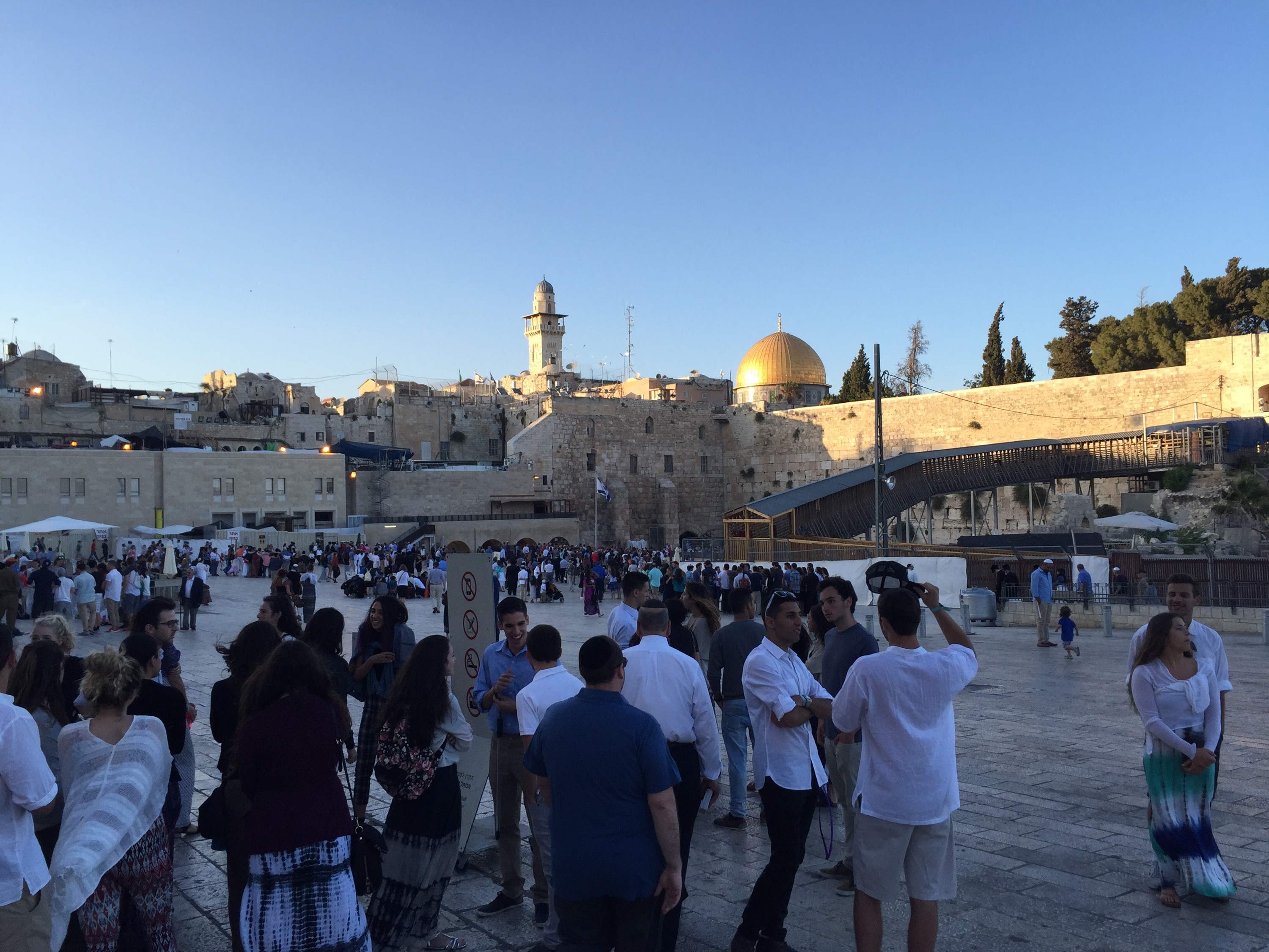 19.07 och solen gick ner här i Jerusalem. Sabbaten är här och en väldigt massa judar samlas vid västra muren, också kallad klagomuren, för att be och läsa Torah tillsammans, sjunga och dansa och fira att sabbaten infallit även denna vecka.