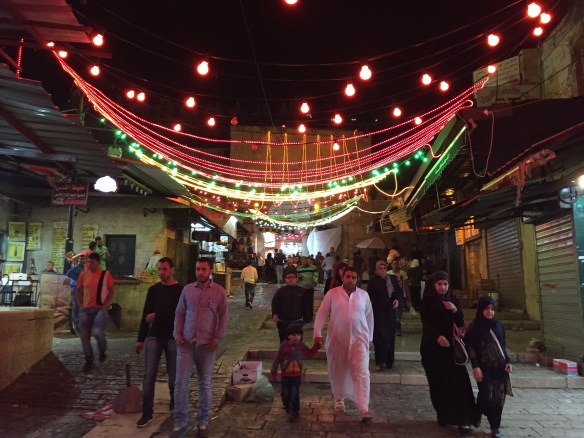 Samtidigt firar muslimerna i en annan stadsdel av Jerusalem att dag 1 under deras Ramadan (fastan) är över.