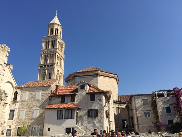 Tillbaka till Split svettades vi i solen på en liten färja. Väl framme passade vi på att boka bord på en lite finare restaurang inför kvällen samtidigt som vi gjorde ett besök uppe i kyrktornet på Saint Dominus-katedralen 🙂 Sjuk konstruktion med trappan upp dit. Kände mig inte helt säker och definitivt inte som om jag stod på trygg mark kan jag säga 😉