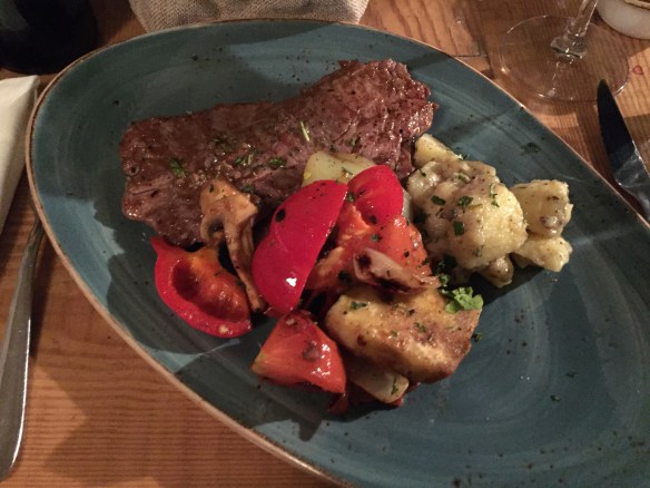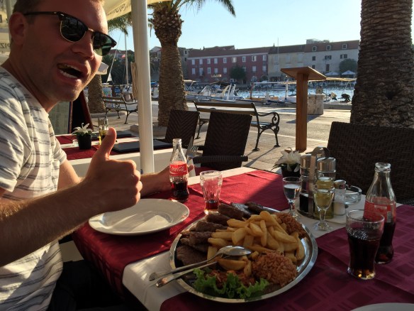 Vår avslutningsmiddag i Split intog vi lite senare än vanligt (när kroaterna äter helt enkelt) och på en finare restaurang i Diocletian’s palats. En trerättersmiddag innehållande köttcarpaccio, ost och prosciutto till förrätt, kött till huvudrätt och nån chokladdröm till efterrätt 🙂 MUMS! Lyckades dock inte fånga någon bild på oss kvällen till ära, men jag kan informera om att vi såg till att klä upp oss lite med skjorta båda två 🙂 Däremot fick jag varsitt foto på maträtterna 🙂