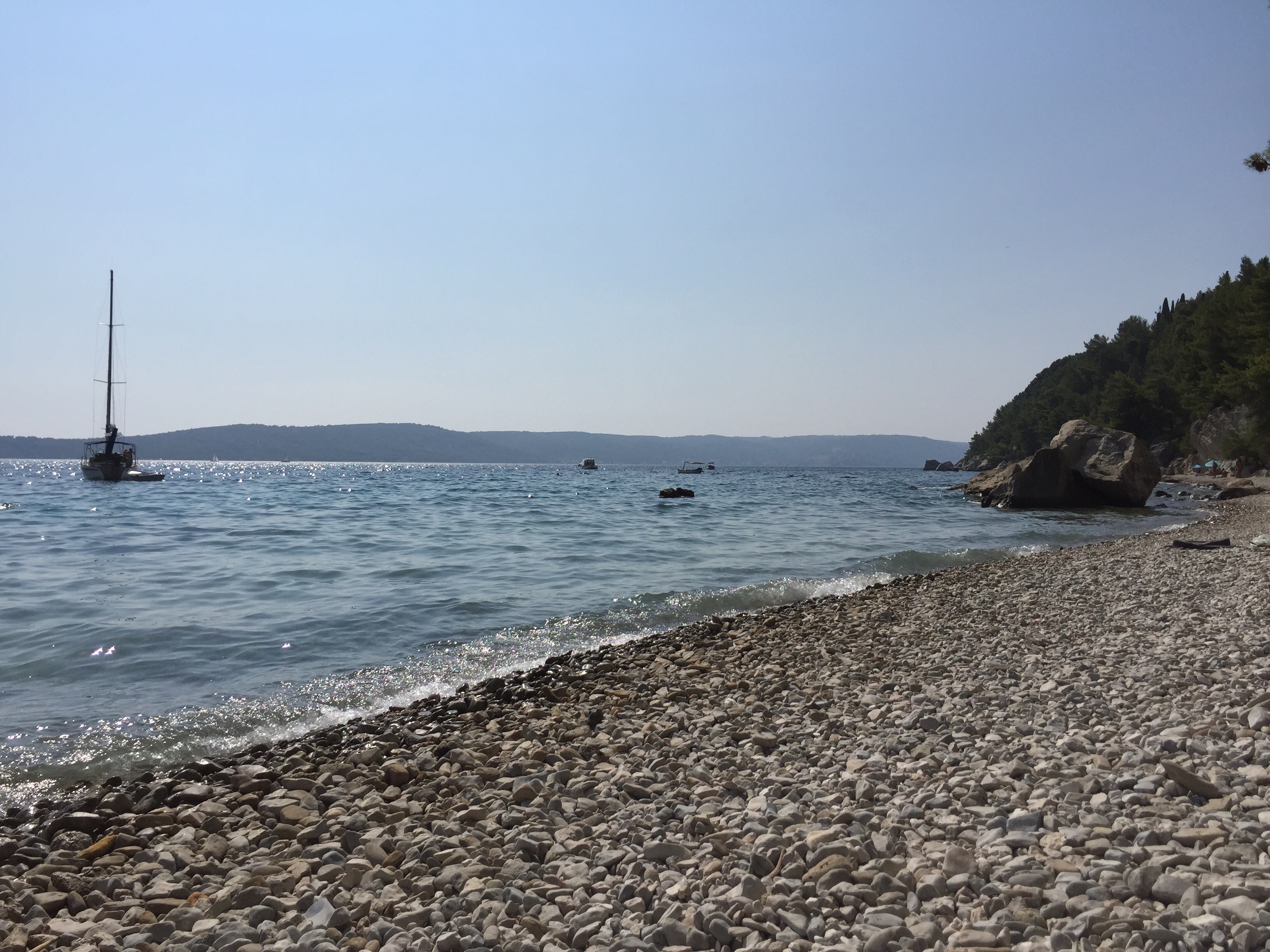 Hem och sova och sen blev det alltså onsdag och dags att lämna Split och åka ut till Vis. Och hit anlände vi vid lunchtid, så efter att vi knackat lite dörr och letat rätt på någonstans att sova käkade vi en välförtjänt pizza 🙂 Därefter blev det en eftermiddag på stranden med sol och bad, Coca Cola och godisnappar. Ja, ni hör, vi har det rätt bra 🙂