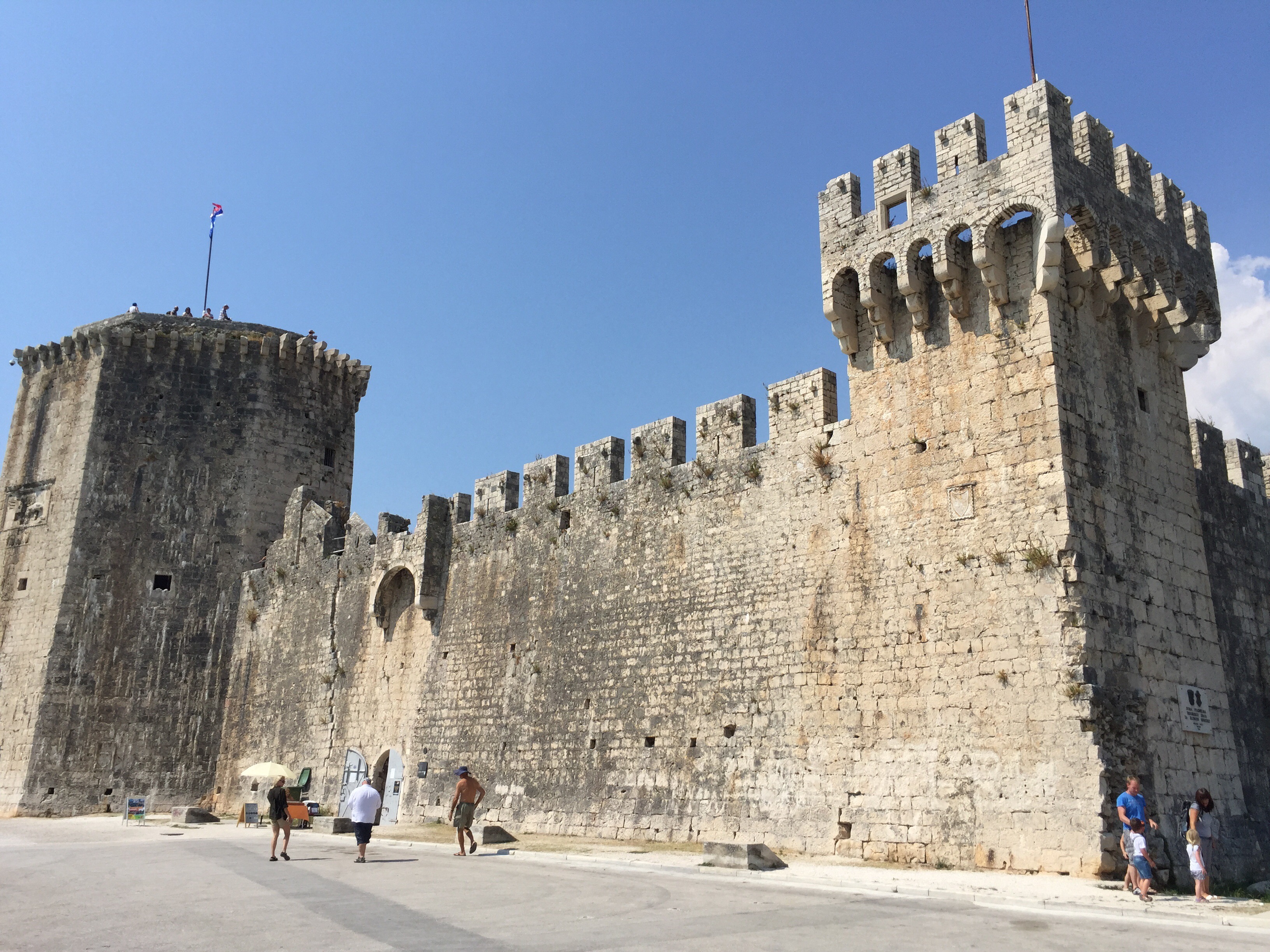 Sista dagen i Split, also known as fjärde dagen på resan eller helt enkelt igår, blev en härlig avslutning 🙂 På förmiddagen tog vi bussen till den lilla byn Trogir som ligger 30 minuter norr om Split. Där strosade vi omkring bland restauranger, marknadsstånd och småbutiker, hittade ett gammalt fort ifrån urminnes tider och tog det väldigt chill. Verkligen jättemysiga kvarter! Och vi blev varsin ”Kroatien-handduk” rikare 🙂