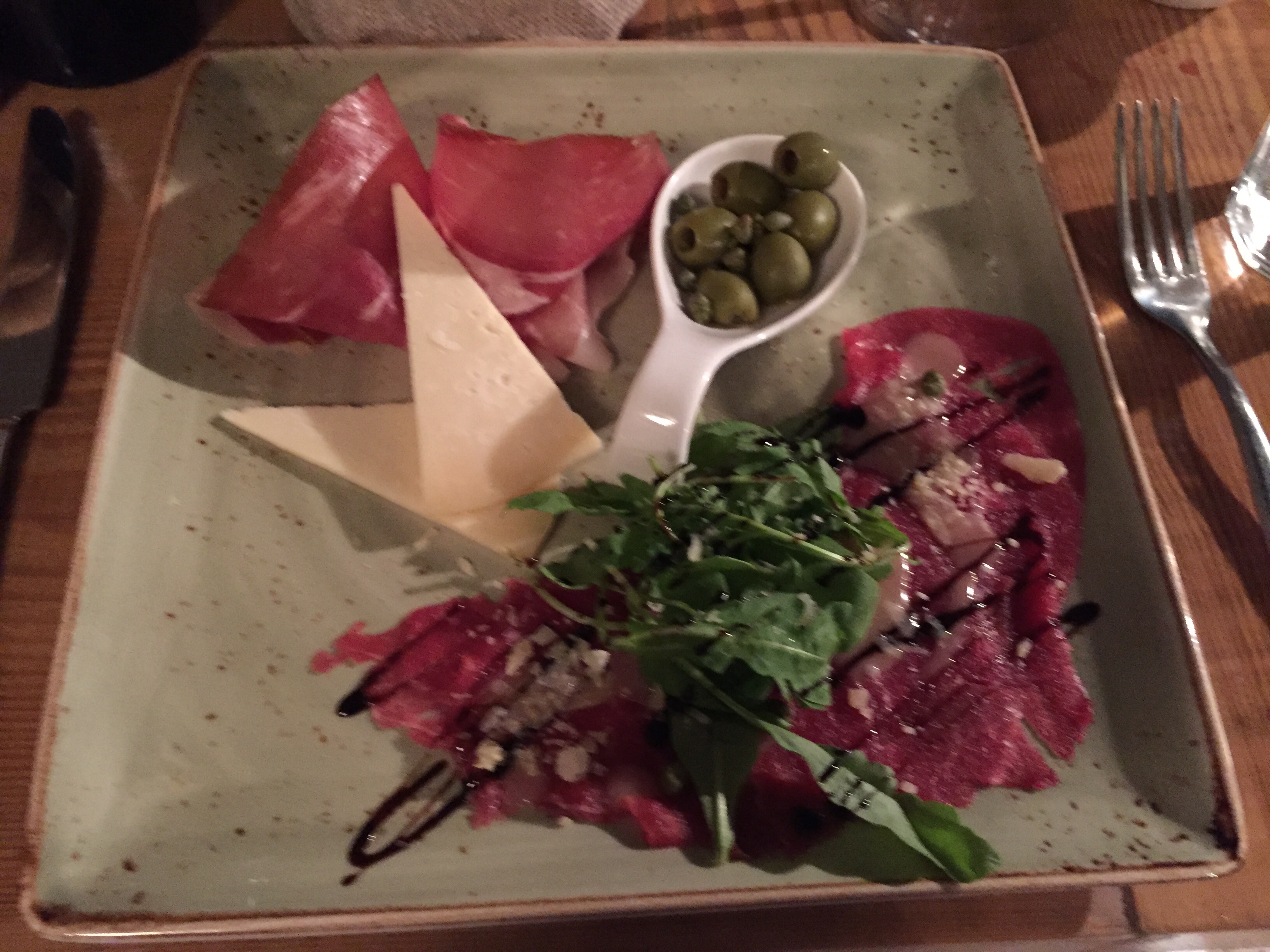 Vår avslutningsmiddag i Split intog vi lite senare än vanligt (när kroaterna äter helt enkelt) och på en finare restaurang i Diocletian’s palats. En trerättersmiddag innehållande köttcarpaccio, ost och prosciutto till förrätt, kött till huvudrätt och nån chokladdröm till efterrätt 🙂 MUMS! Lyckades dock inte fånga någon bild på oss kvällen till ära, men jag kan informera om att vi såg till att klä upp oss lite med skjorta båda två 🙂 Däremot fick jag varsitt foto på maträtterna 🙂