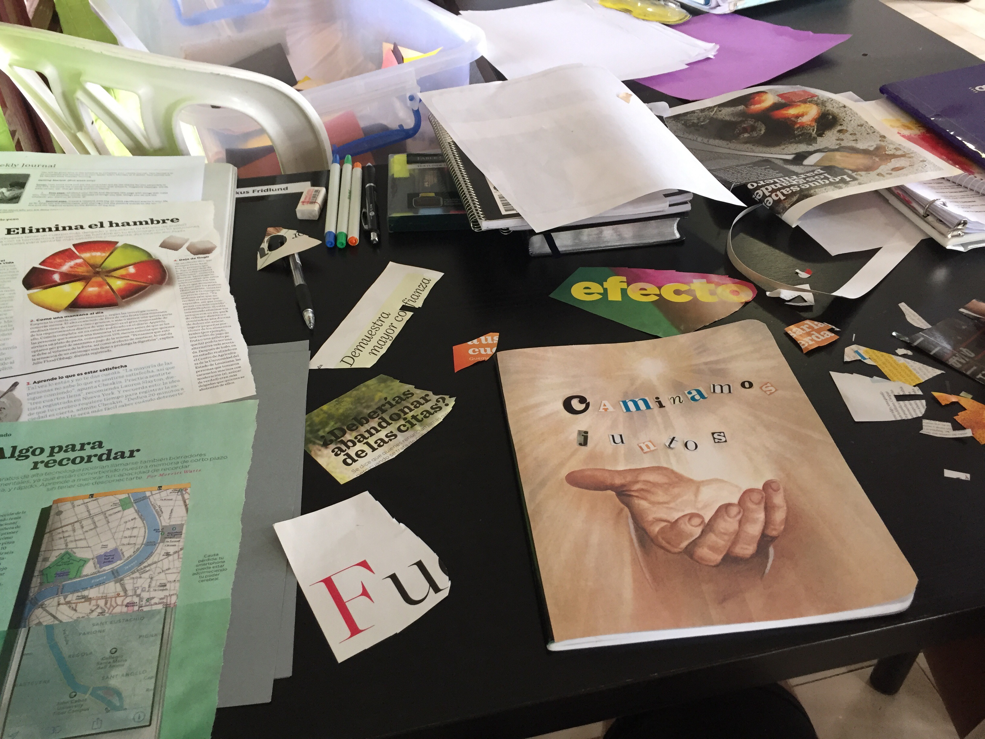 Igår, fredag, hade vi pysselstund samtidigt som regnet öste ner utanför klassrummet. Vi pysslade ihop vår ”journal” som vi varje vecka ska skriva anteckningar i och reflektera över hur veckan har varit och sen lämna in den till ”lärarna”.