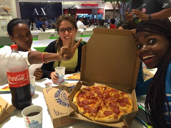Som avslutning på denna första vecka och som en liten överraskning till oss alla bjöd de oss på en tur till huvudstaden Santo Domingo igårkväll. Där spenderade vi några timmar på ett gigantiskt shopping-mall, åt pizza och gick på bio 🙂 Riktigt trevlig avslutning på en bra första skolvecka här i DR.
