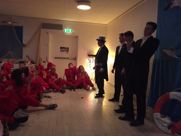 Sen var det dags för själva sittningen med allt vad det innebar. Vi gjorde entré efter att alla gäster hade satt sig ner, uppträdde med vår dans inna termin 1 kom in och serverade och dansade de med för oss 🙂 Spex, sånger och mera dans följde, en riktig festkväll med andra ord 🙂