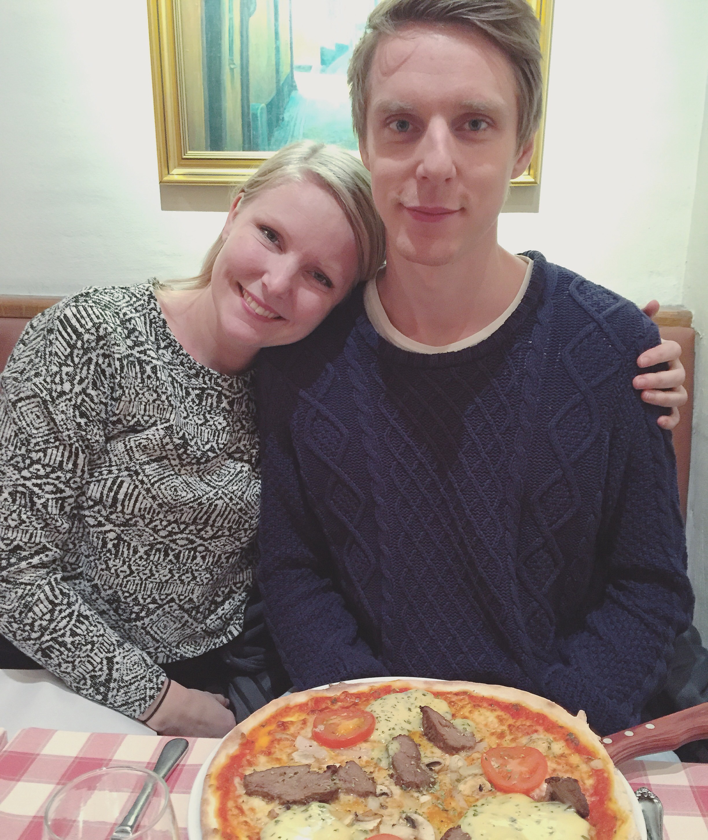 Igår satte jag mig på tåget från Uppsala klockan 14.11 för att ta mig till Sthlm och möta upp Emma och fira brorsan som fyllt 20. Men jag fick hoppa av redan i Upplands Väsby, byta till pendeln till Häggvik för att sedan åka ersättningsbuss mellan Häggvik och Kista och därifrån tunnelbana in till Sthlm C. Det tog 3 timmar istället för 50 minuter som det brukar göra. Men fram kom jag till slut och jag mötte då upp Emma och Mattias som fått strosa omkring lite på stan i väntan på mig. Vi tog oss då in till Gamla stan och fann oss en mysig italiensk restaurang där vi käkade pizza och pasta. What a chock! 😉